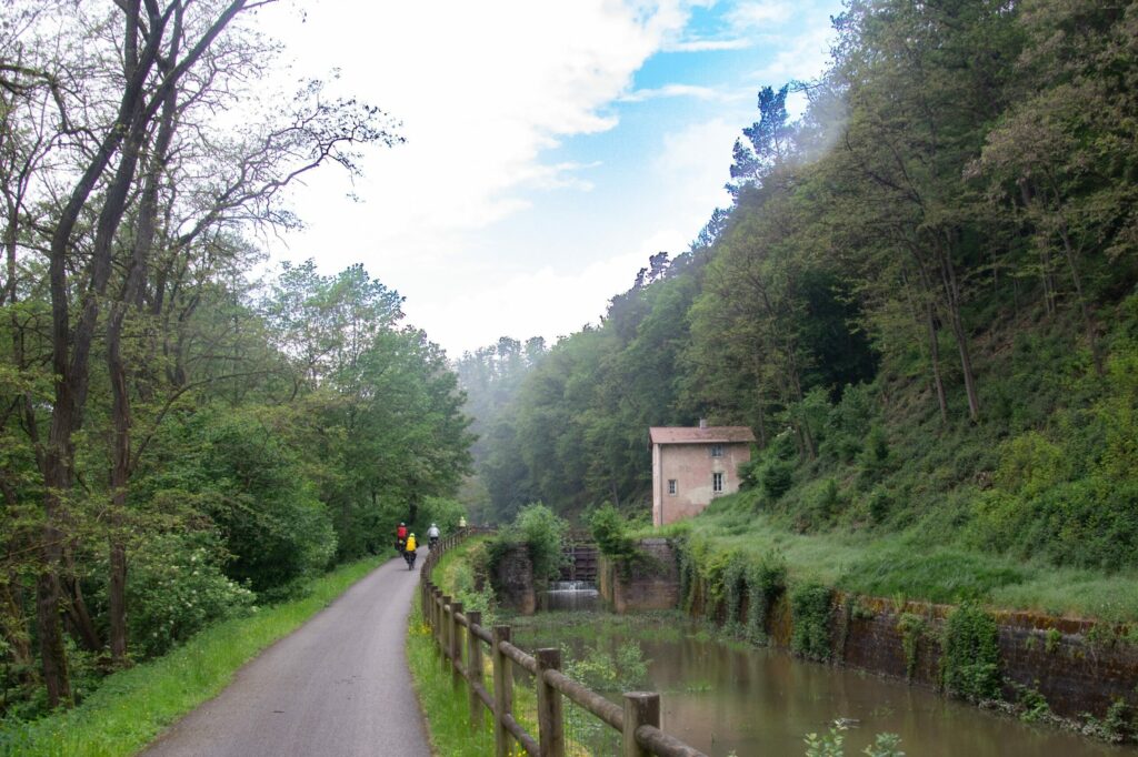 La véloroute du canal de la Marne au Rhin est aménagée sur l’ensemble du trajet