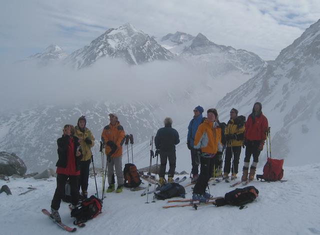 Le dernier jour sera un « GPS Day » c’est-à-dire avec une visibilité oscillant de nulle à mauvaise, sur un bon 1500 m. de dénivelé avec une section bien technique dans de la pente raide parsemée d’arcosses, une neige pleine de surprises, bref tout ce qu’il fallait pour le bizutage de Francis pour qui c’était le week-end « découverte du ski de randonnée ».