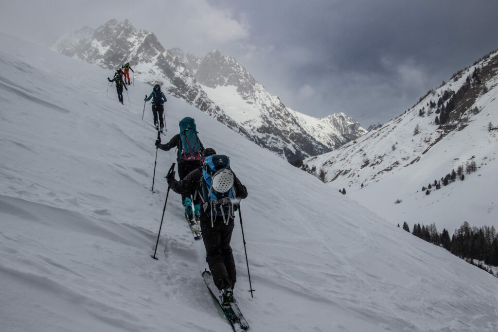 Première sortie en ski de rando du groupe « perfectionnement ». Bon, comme il manquait la moitié du groupe, on a fusionné avec un groupe d’avions de chasse de la FFME. Les filles étaient toutes émoustillées de voir (enfin) des vrais athlètes de ski alpinisme !